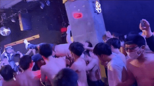 她们在台上跳舞,裸男们亦在台下狂舞。