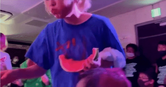 比如在演出活动中和粉丝嘴对嘴喂西瓜。
