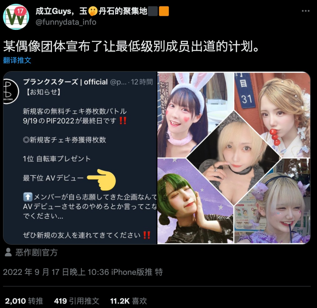 “人气排名最末位的偶像,就要接受AV业界出道的惩罚”。