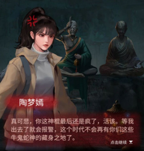 制作者也将玩家的情绪代人到了游戏之中,比如二代主角陶梦嫣不给鬼怪神佛一点面子,暴躁拆台邪教,火烧邪经,被玩家们奉为历代最强唯物主义战士。