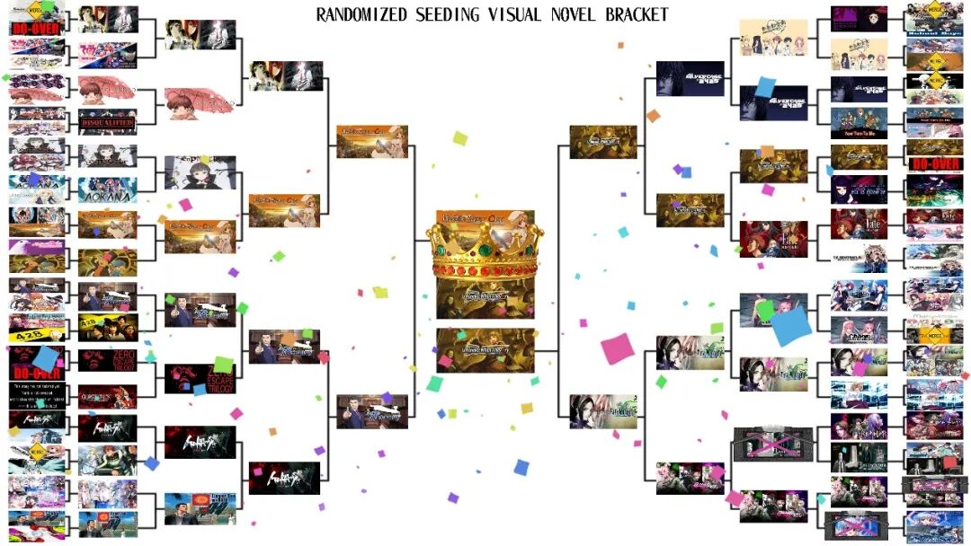 上万人参与了“视觉小说”类别的投票,参选作品从恋爱题材的《CLANNAD》到科幻悬疑的《十三机兵防卫圈》,从R18的《兰斯》到面向主流大众的《逆转裁判》,既有当年还属于同人社团作品的《Fate/Stay night》,也有近年新晋的热门独立游戏《主播女孩重度依赖》……总之基本囊括了这一类型各细分领域的名作,光看初选名单就让人觉得会是一场结果难料的大乱战。