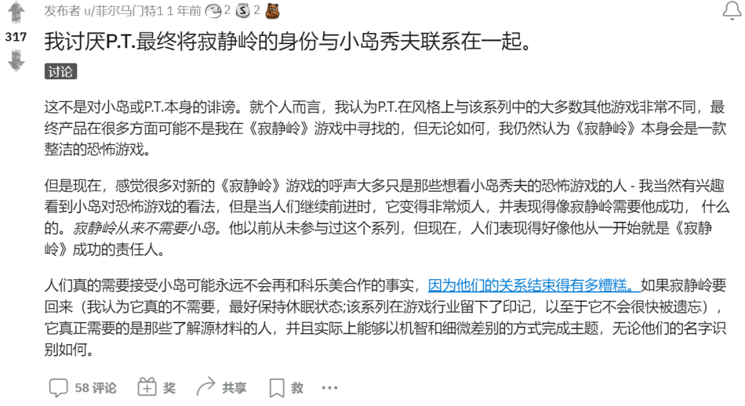 尽管冲突并不激烈,但《寂静岭》的关注群体已经悄然分化为“小岛P.T”和“原班人马”两派。