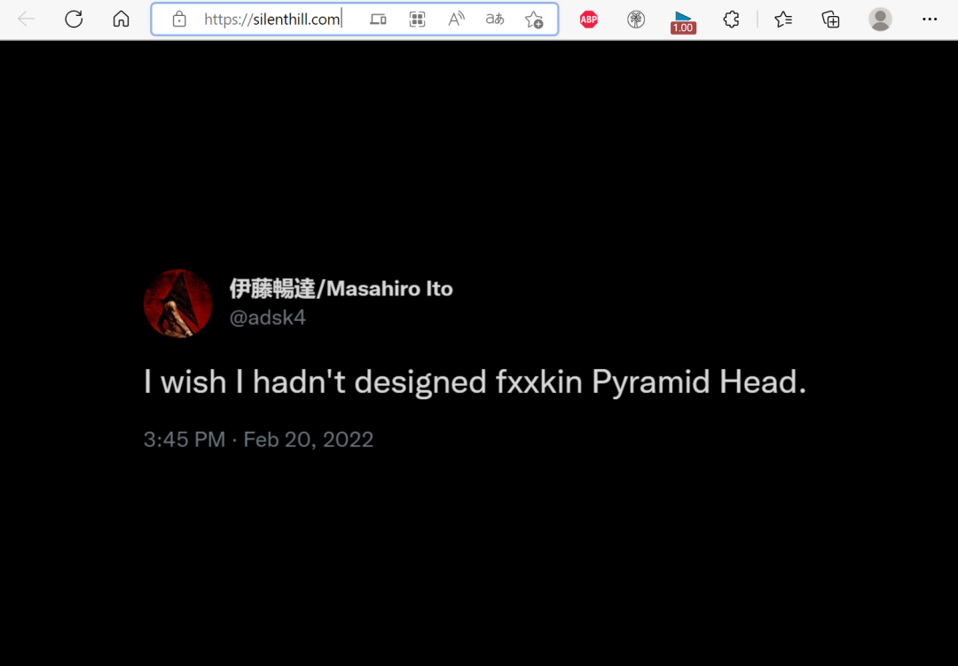 当时已经有粉丝买下了科乐美弃置已久的“Silent.com”域名,在首页展示“三角头”的形象,之后则更换了伊藤畅达的这条推文,至今依然如此。