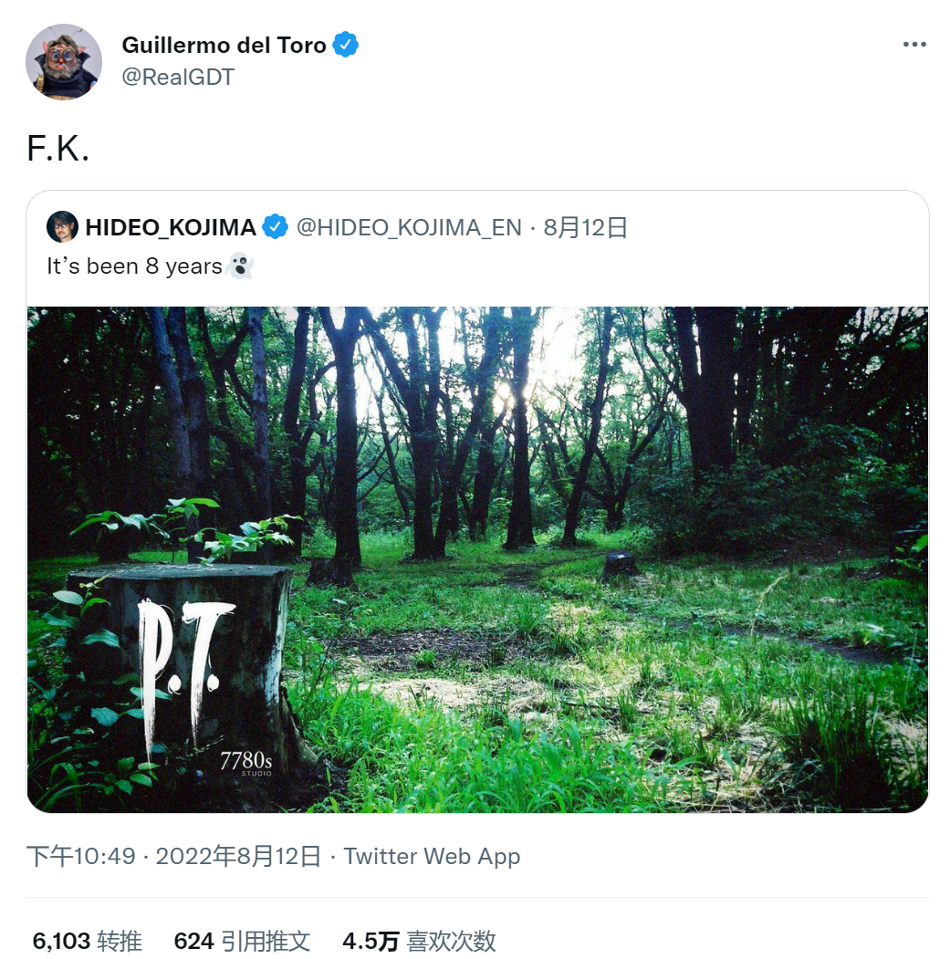 他的导演朋友吉尔莫很快转发了这条推特,并留言“F.K”,含义自然是“Fuck Konami”。