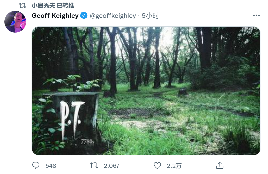 同一时间,TGA的主持人兼创始人Geoff Keighley则发表了那张《P.T》的宣传图,尽管没有附带任何台词,但拱火之意溢于言表,而小岛秀夫本人也转发了这条推特。