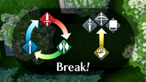 使用优势武器攻击敌人,命中时会让敌人陷入“break”状态,在该状态下的单位,直到下一场战斗结束前将无法反击。
